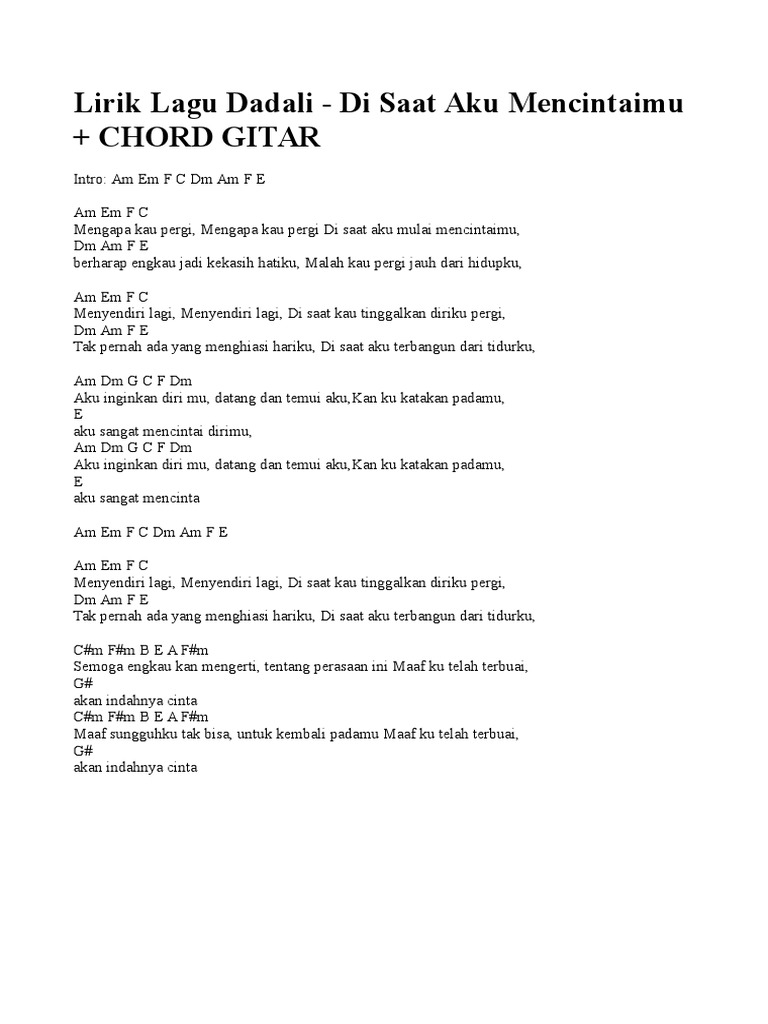 C g dulu pernah ada cinta am em dulu pernah ada sayang f c g namun kini tiada lagi perasaan seperti dulu.